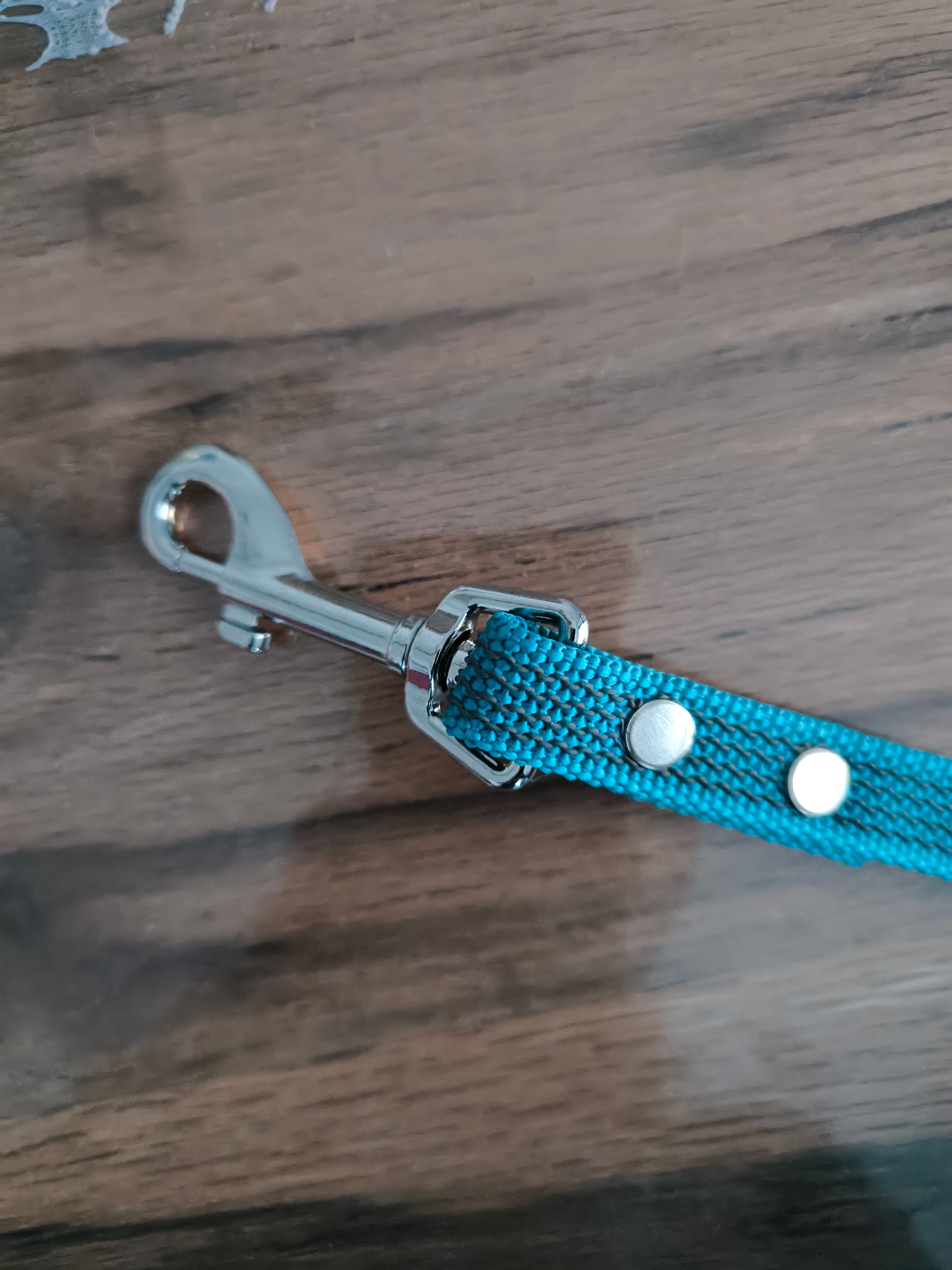 Diese Hausleine in Türkis wurde speziell für den Einsatz im Haus entwickelt. Sie hilft dir dabei, deinen Hund im Alltag ruhig zu führen, sanft zu korrigieren und jederzeit greifbar zu haben – ohne hektisches Hinterherlaufen oder lautes Eingreifen.